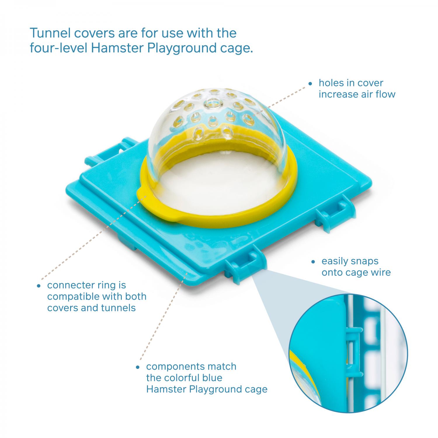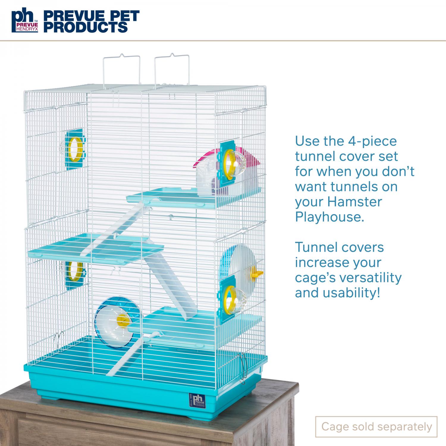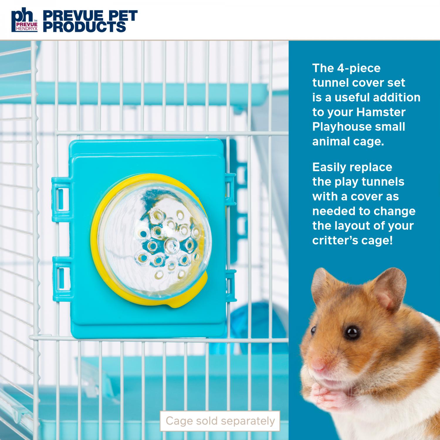 2006 TUNNEL COVERS from Prevue Pet Products is a 4-pack of covers to use with the plastic tunnels on your Hamster Playhouse (#2006). These covers are specifically designed to match the vibrant colors of the other Playhouse accessories. Dimensions: 1"L x 1"W x 2.5"H.