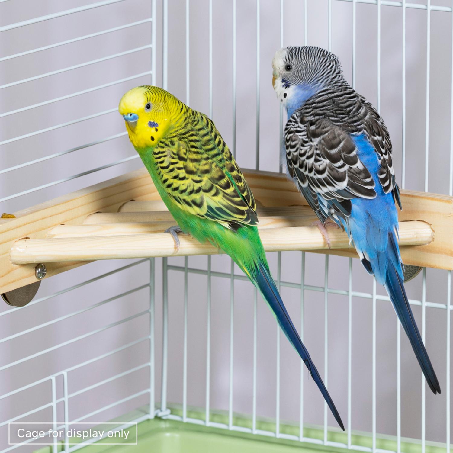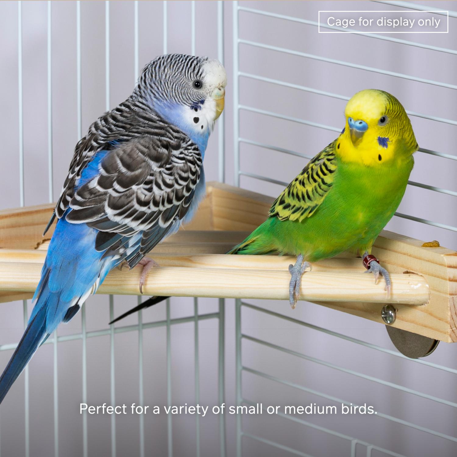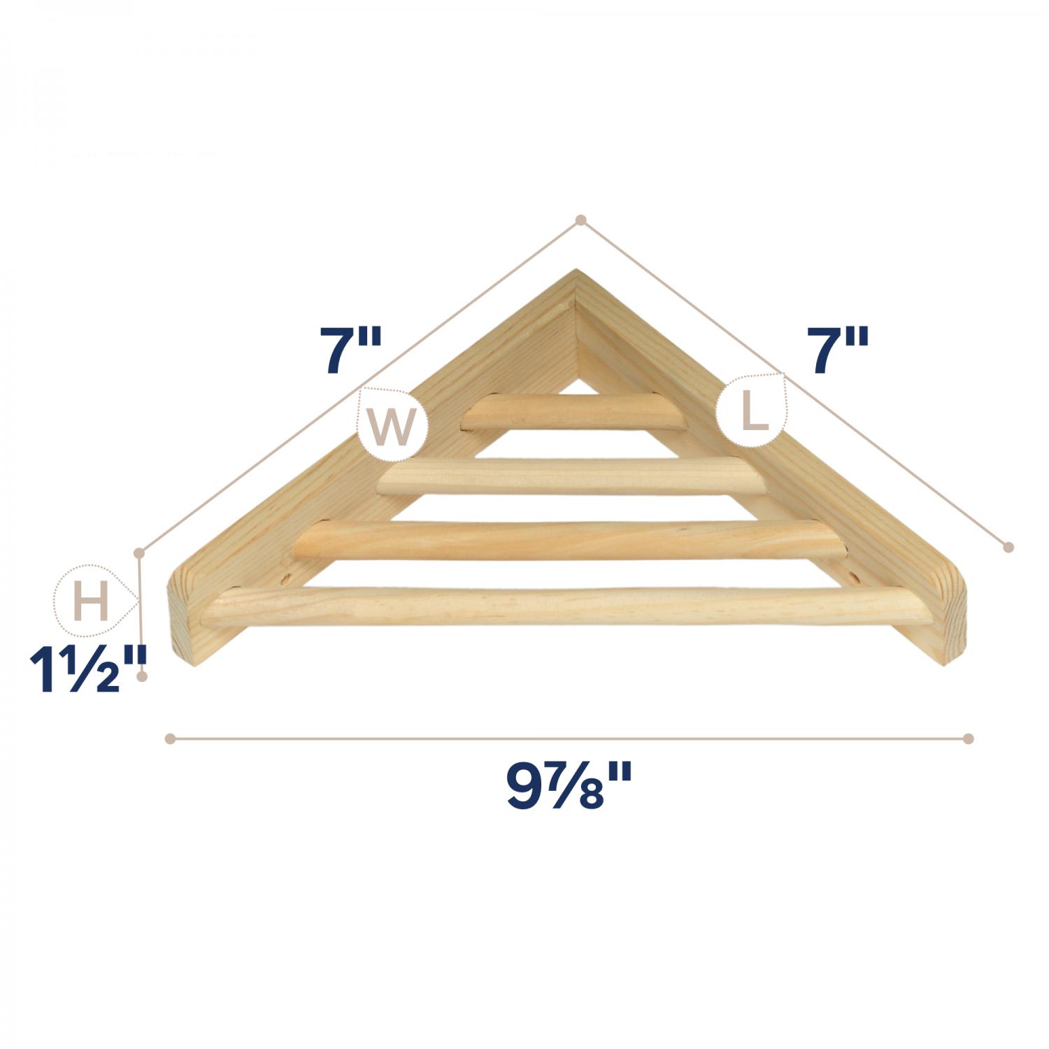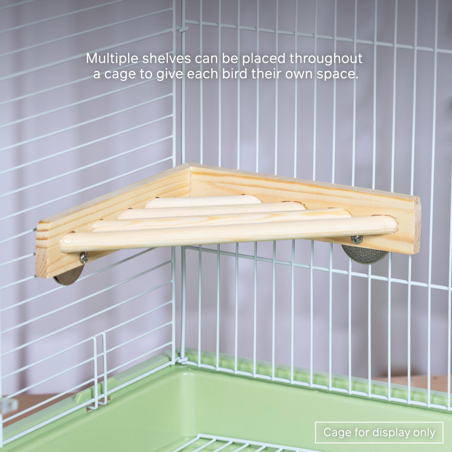 Wood Corner Shelf (#3300) from Prevue Pet Products gives birds a place to sit, play, or sleep. Multiple shelves can be placed throughout a cage to give each bird their own space. Hang toys from the roof above the shelf, or dangle toys from the platform into the space below. Attaches easily to the corner of most cages; hardware included. Dimensions: 7"L x 7"W x 1-1/2"H. Dowel diameter: 1/2".